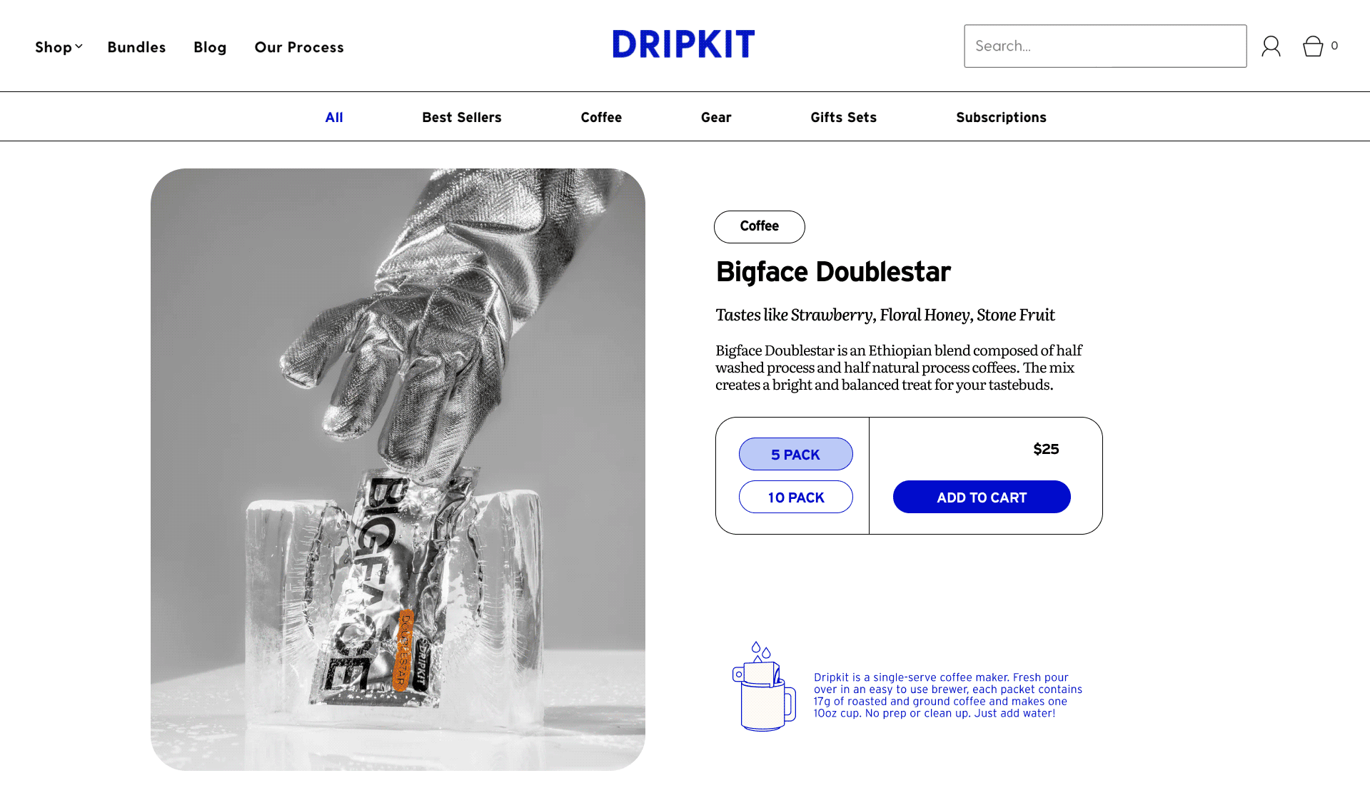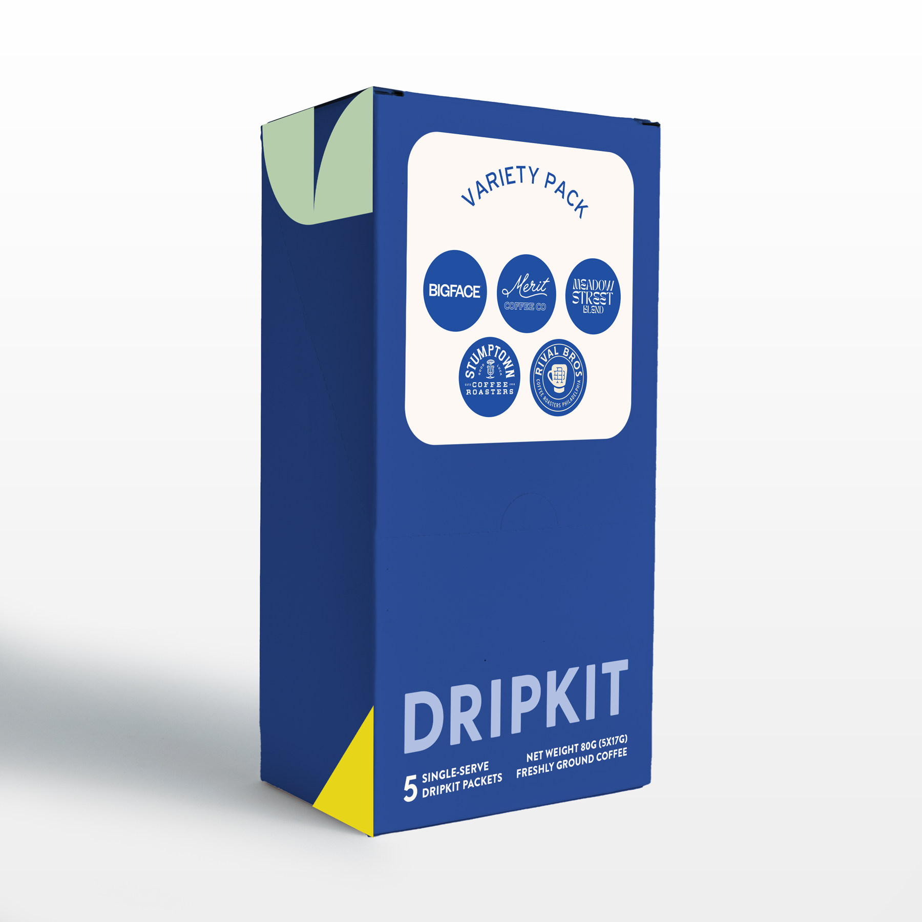 A refresh of art direction for a to-go pourover product, including packaging updates and web presence.